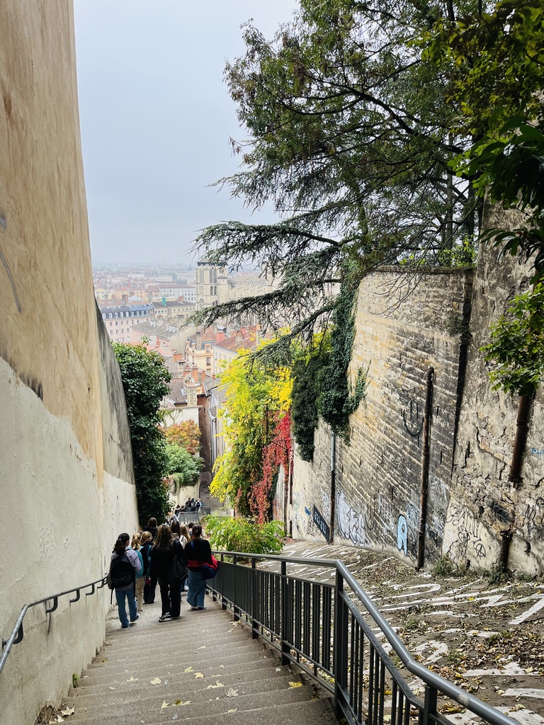 Nach der Ankunft am Montag und dem Kennenlernen der Gastfamilien standen eine Rallye durch Val d’Oingt sowie ein Spaziergang ins benachbarte Oingt auf dem Programm. Am Mittwoch nahmen die deutschen Gäste gemeinsam mit ihren Austauschpartnerinnen und -partnern am Schullauf „Cross“ durch die Weinberge teil – ein sportlicher Höhepunkt der Woche. Der Tagesausflug nach Lyon am Donnerstag bot Einblicke in französische Geschichte und Kultur. Neben den gemeinsamen Aktivitäten sammelten die Jugendlichen interkulturelle Erfahrungen im Alltag der Gastfamilien und stärkten ihre Sprachkenntnisse im direkten Austausch.