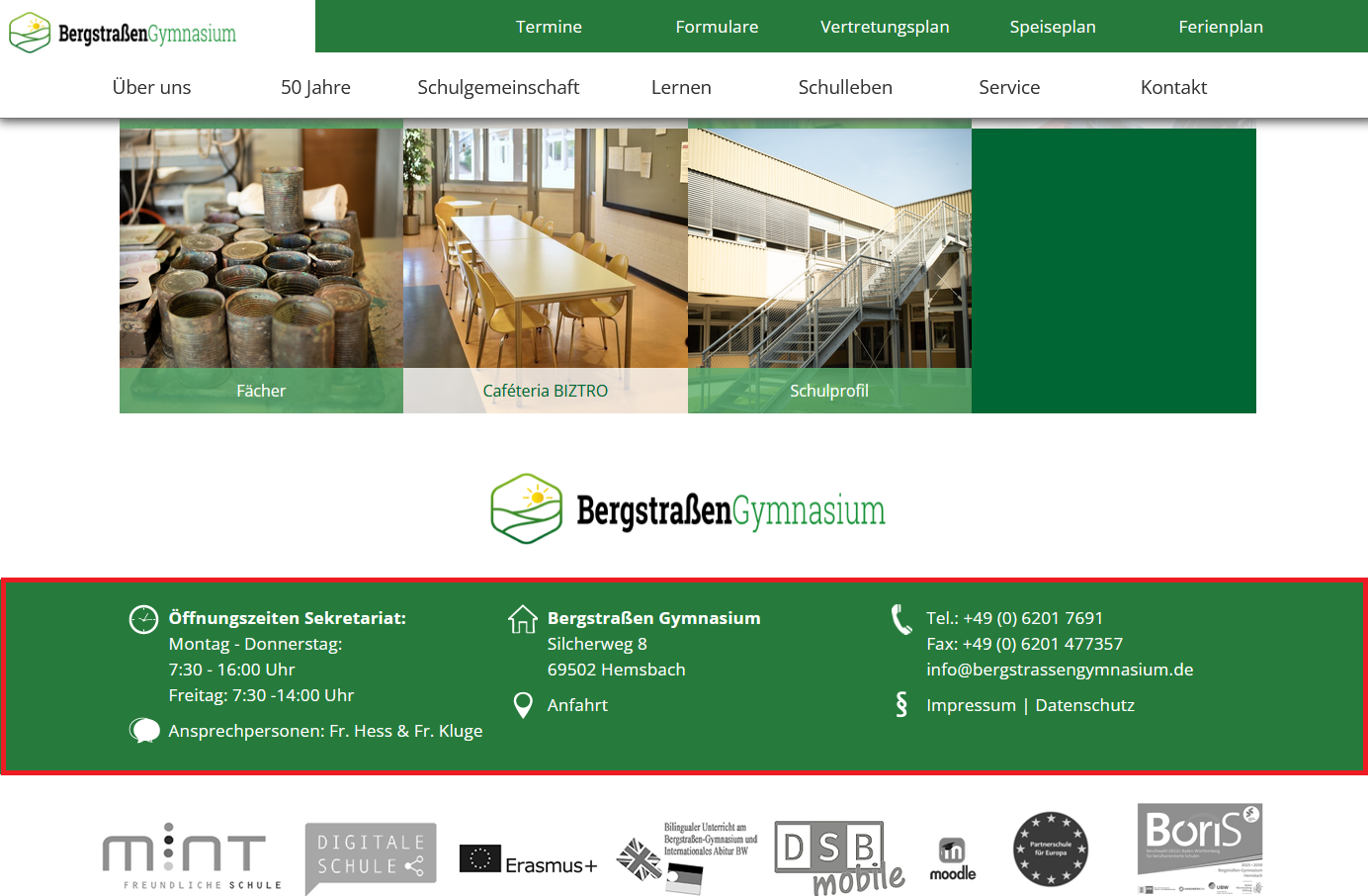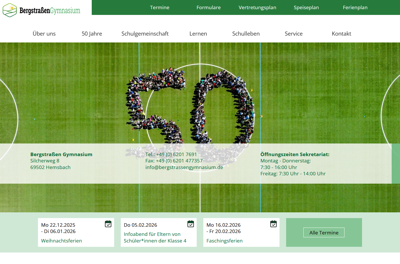 Das ist die Seite des Bergstraßen Gymnasium in Hemsbach.Die Seite wird auch Web · Seite genannt.